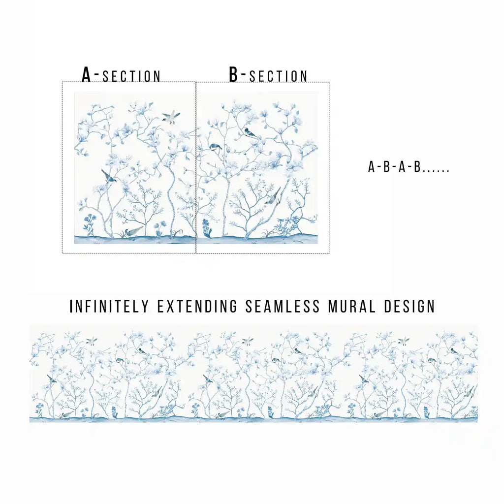 • Pas de motif de répétition pour chaque pièce. • Conception d'extension infinie, chaque pièce peut être intégrée de manière transparente avec un produit de même taille et peut être utilisée comme papier peint pour couvrir toute la pièce. • Respectueux de l'environnement et non toxique, sans PVC. • Matériau de papier peint chinoiserie classique, texture en soie fine avec dos en papier. • Fini extra mat, antireflet. • Ne se décolore pas au soleil, robuste et durable.