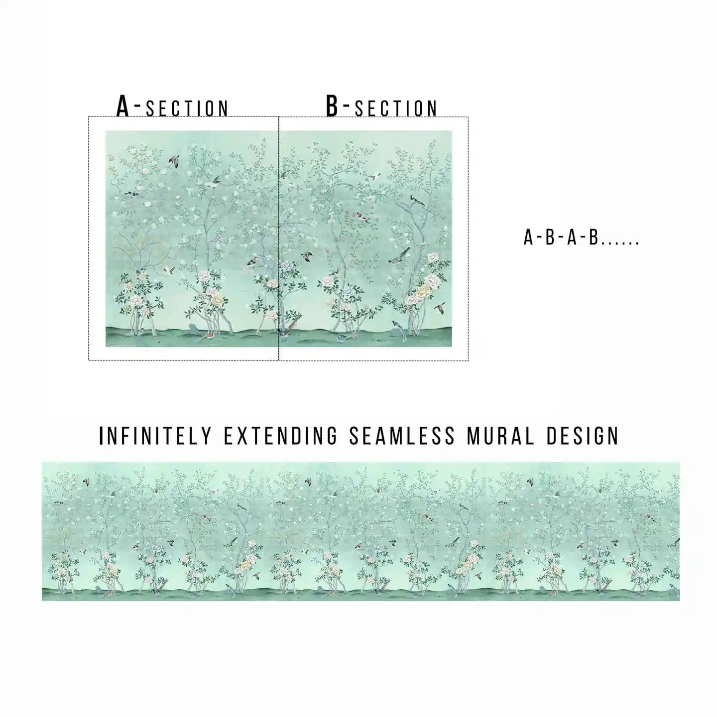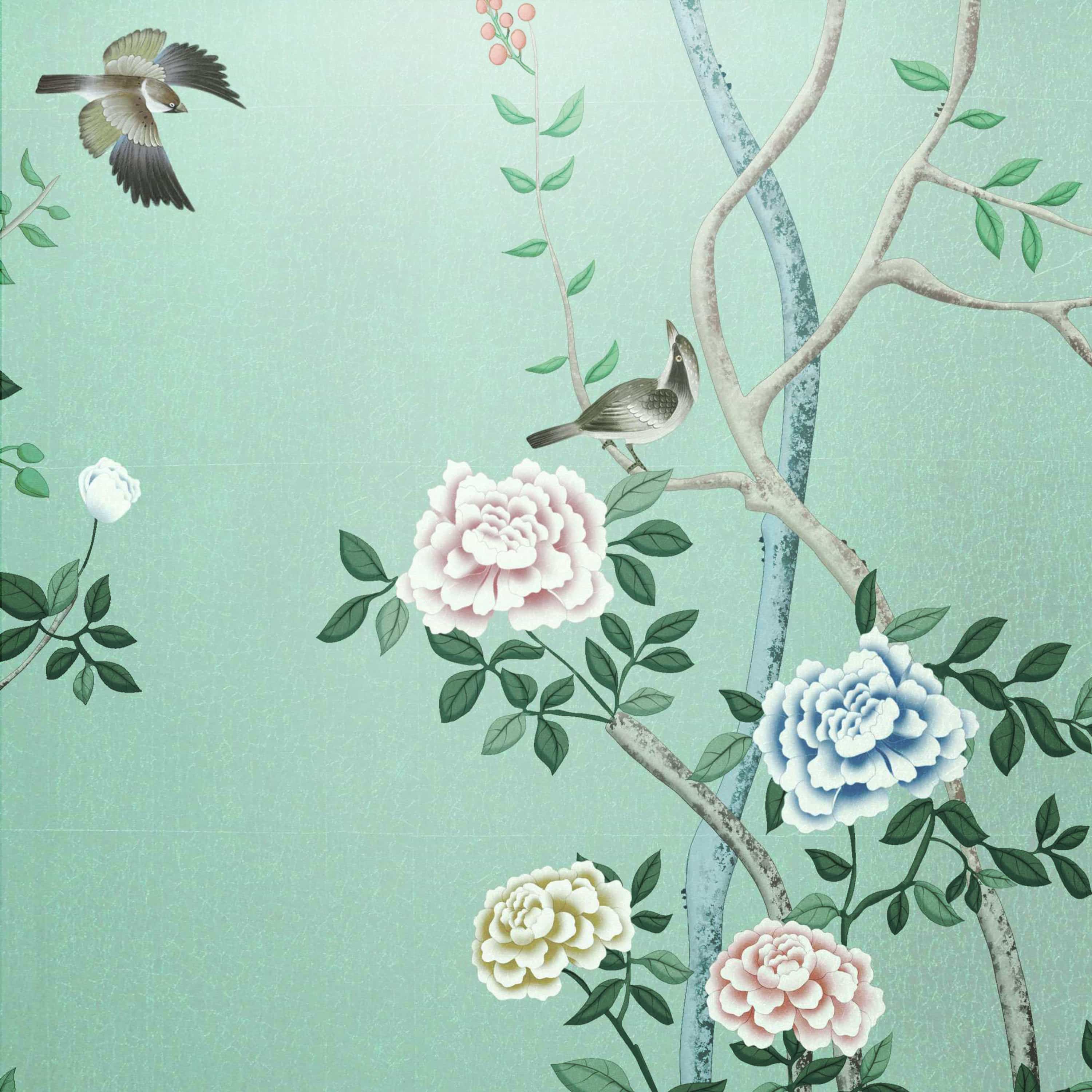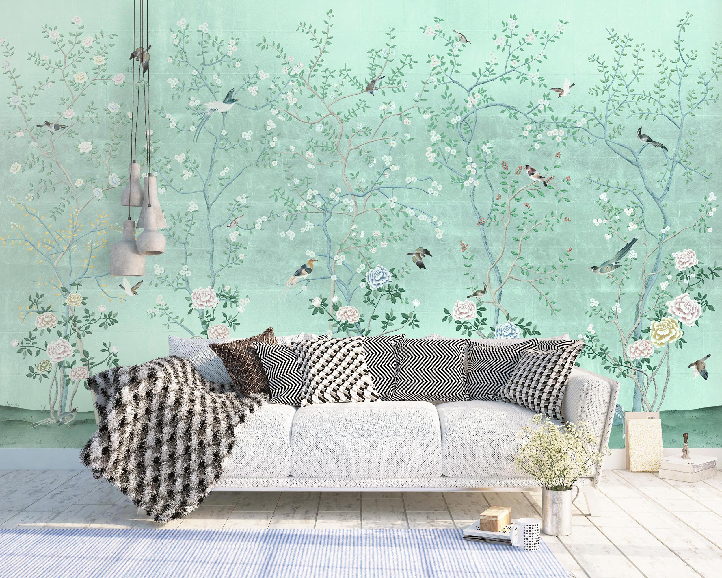 Seamless Design — Chinoiserie mural wallpaper creates a continuous, uninterrupted flow across walls for a refined statement