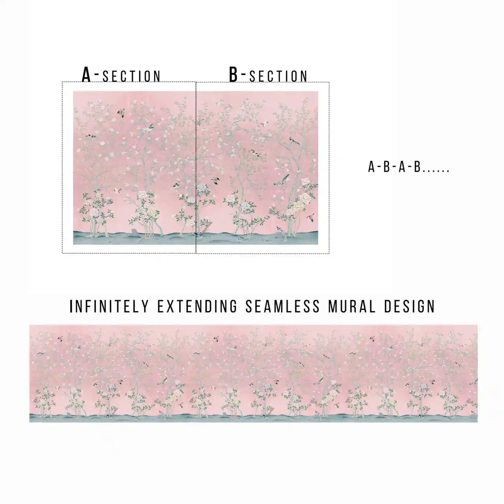 Seamless Design — Chinoiserie mural wallpaper creates a continuous, uninterrupted flow across walls for a refined statement