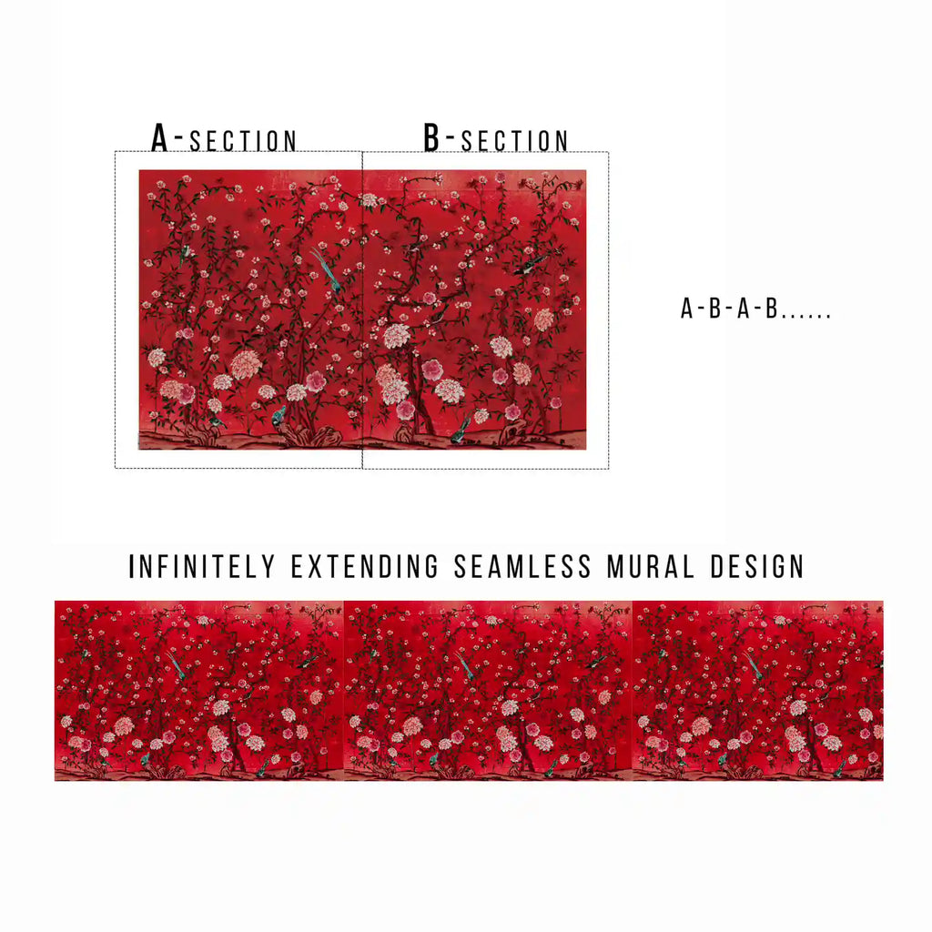 Seamless Design — Chinoiserie mural wallpaper creates a continuous, uninterrupted flow across walls for a refined statement