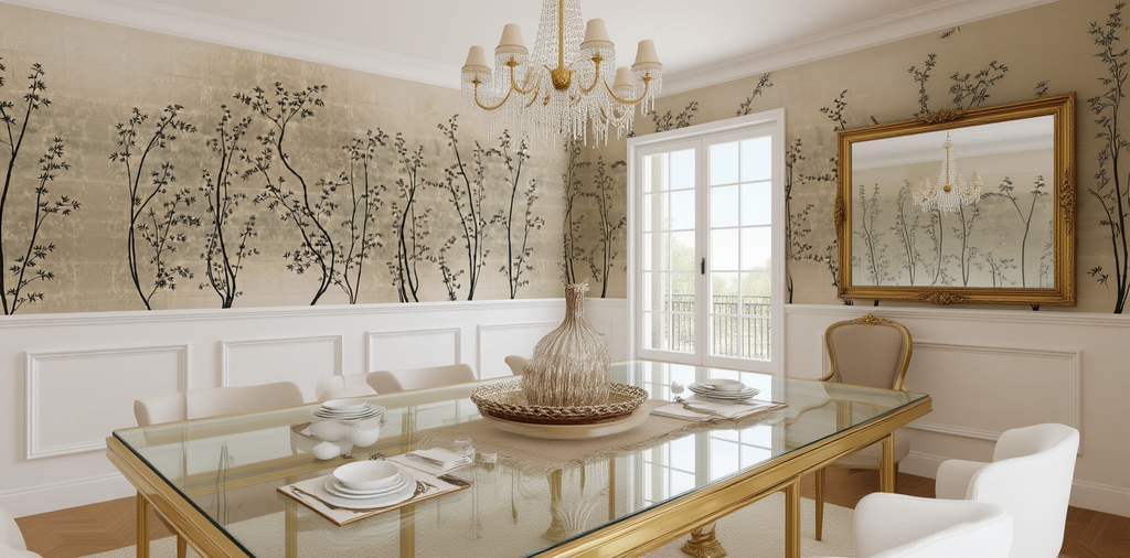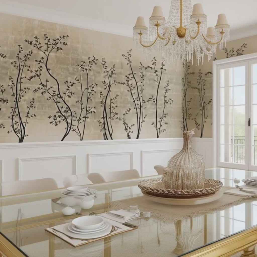 Metallic Leaf Finish — Shimmering highlights add depth and luxury to any space