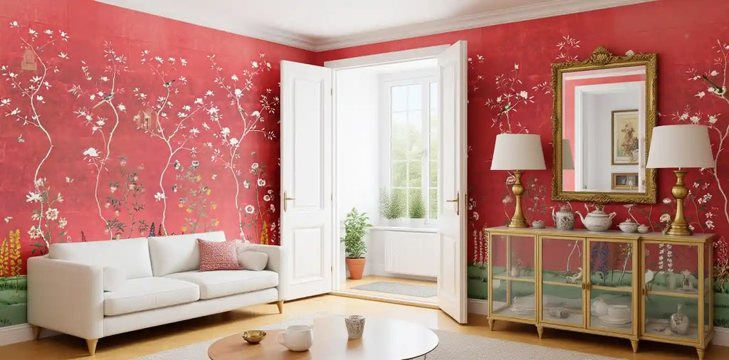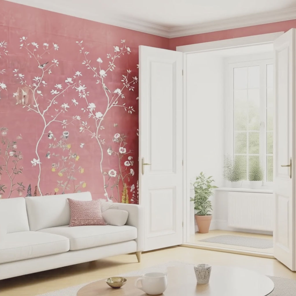 Seamless Design — Chinoiserie mural wallpaper creates a continuous, uninterrupted flow across walls for a refined statement