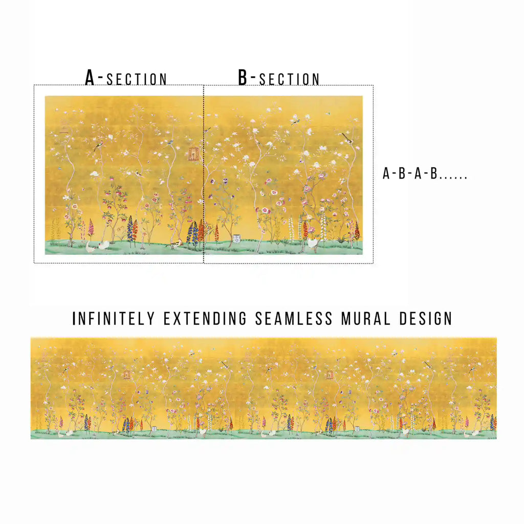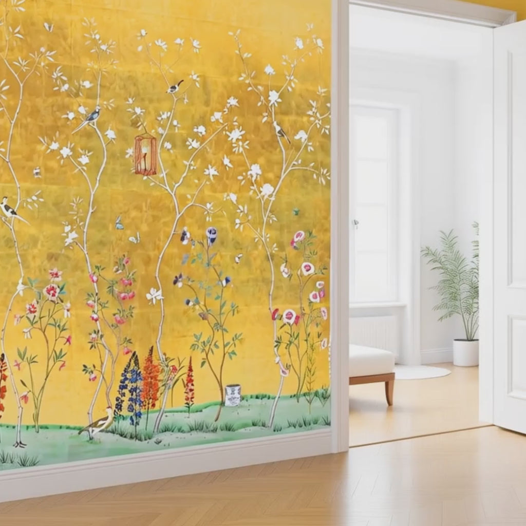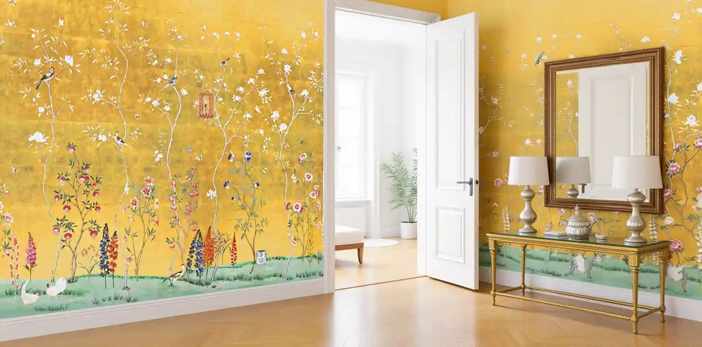Seamless Design — Chinoiserie mural wallpaper creates a continuous, uninterrupted flow across walls for a refined statement