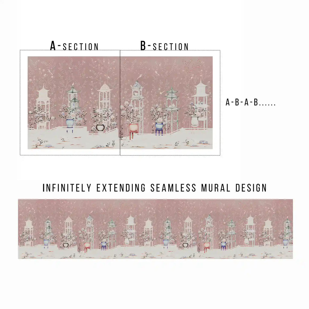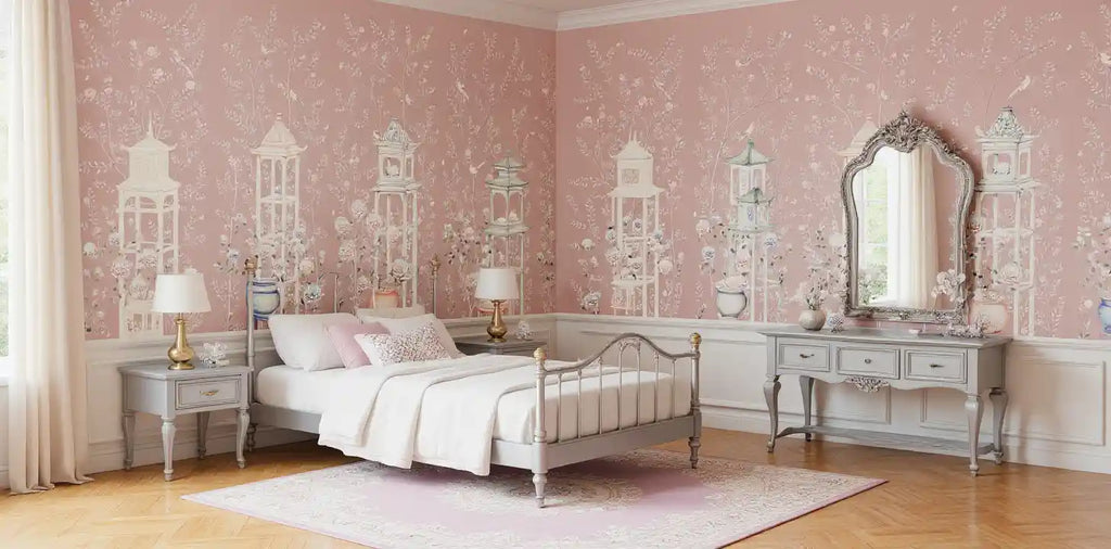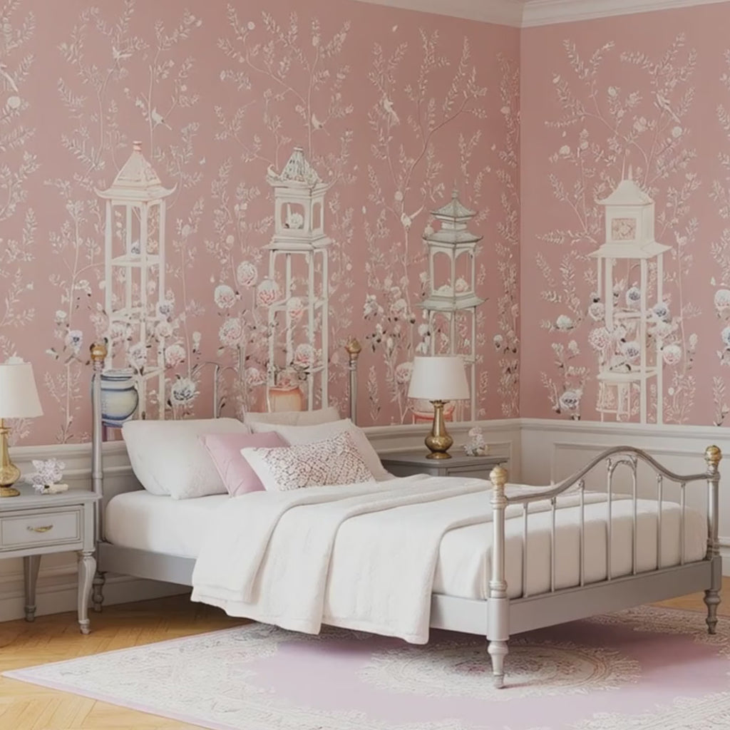 Seamless Design — Chinoiserie mural wallpaper creates a continuous, uninterrupted flow across walls for a refined statement