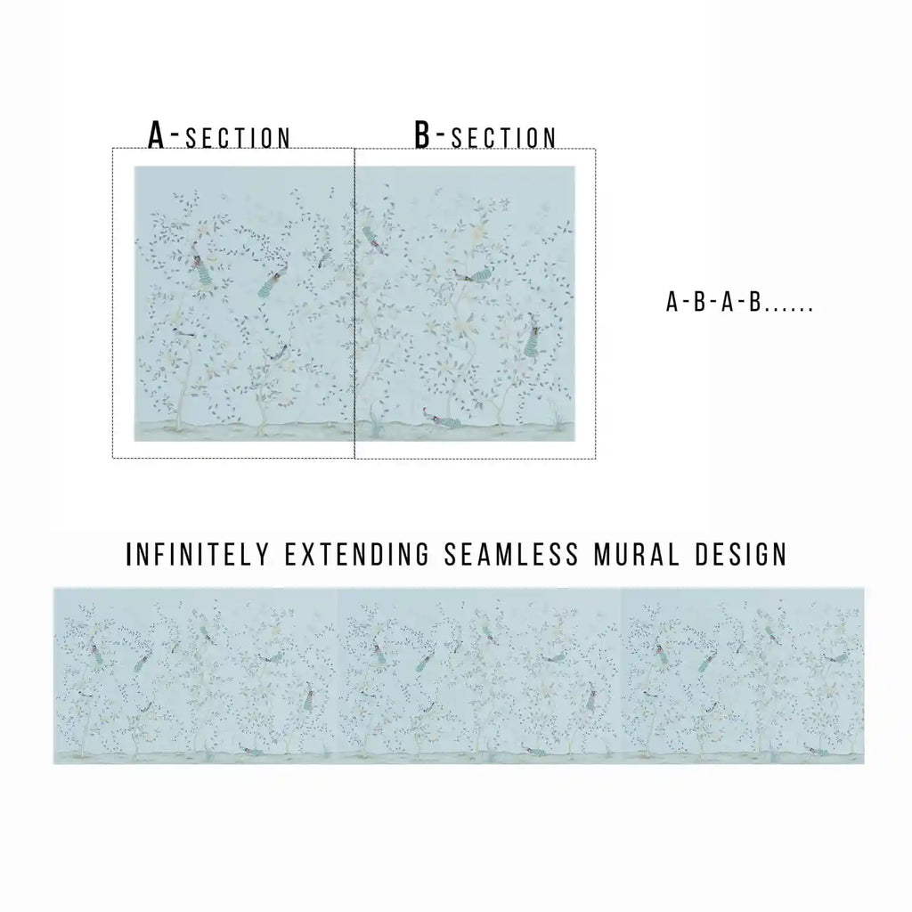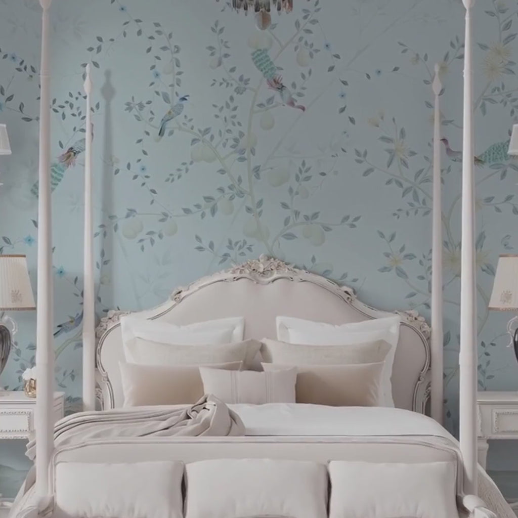 Seamless Design — Chinoiserie mural wallpaper creates a continuous, uninterrupted flow across walls for a refined statement